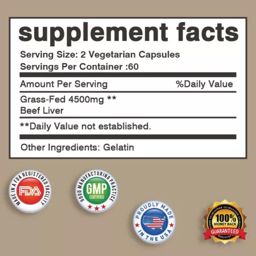 草飼牛肉肝膠囊 4500MG – 最大效力, 免疫支持 – 天然鐵